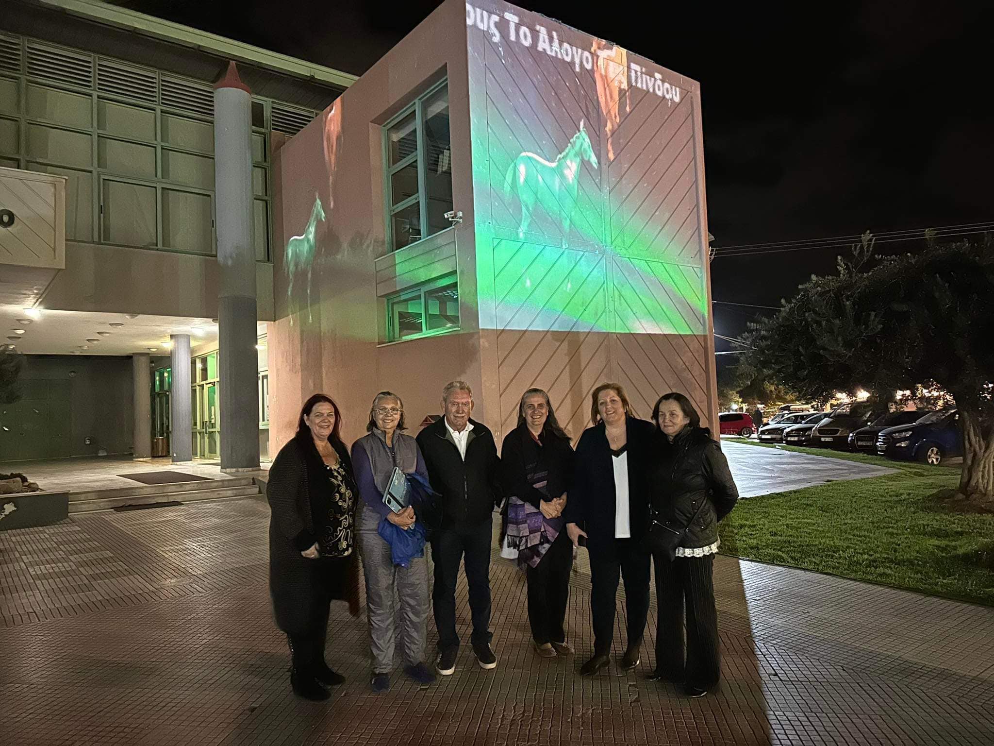 Με πρωτοβουλία της Δήμητρας Ράπτη, εντεταλμένης συμβούλου πολιτισμού και προέδρου του Δημοτικού Συμβουλίου και με τη στήριξη του δημάρχου Σαρωνικού Πέτρου Φιλίππου, η εικαστικός Stella Evgena προέβαλε βίντεο με ολογράμματα σε πρόσοψη του δημαρχιακού μεγάρου, το απόγευμα της 27ης και της 28ης Οκτωβρίου. Στο έργο παρουσιάστηκαν χρωματιστά άλογα να τρέχουν πάνω στο βόρειο σέλας δίνοντας έτσι μια ονειρική εικόνα.