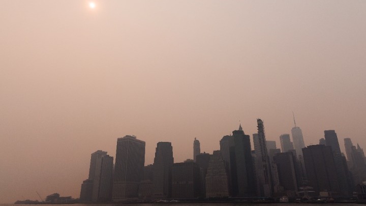 Στη Νέα Υόρκη, το άγαλμα της Ελευθερίας και οι ουρανοξύστες του Μανχάταν είχαν καλυφθεί από πορτοκαλί καταχνιά, ενώ μάσκες -απομεινάρια της πανδημίας του νέου κορονοϊού- ξανάκαναν την εμφάνισή τους στους δρόμους.