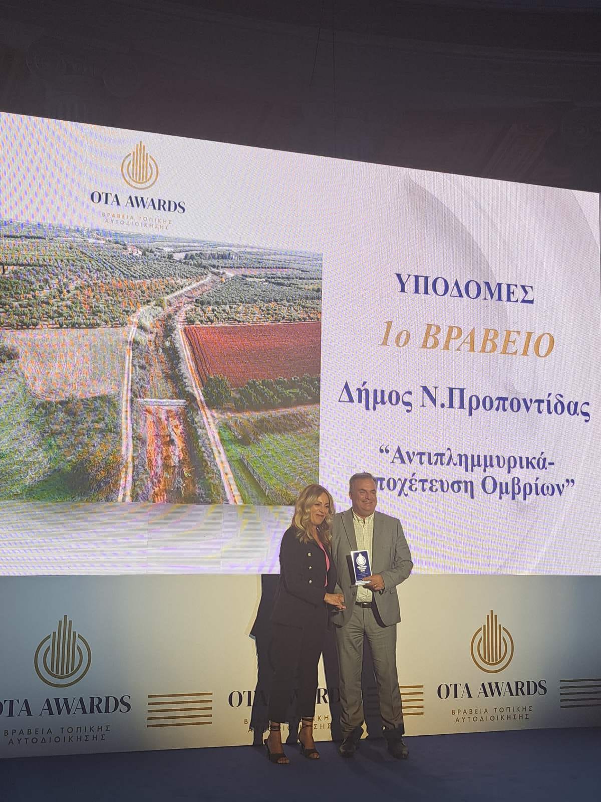 • 1ο Βραβείο στην κατηγορία: “Έργα Αντιπλημμυρικής προστασίας και αποχέτευσης ομβρίων υδάτων”.