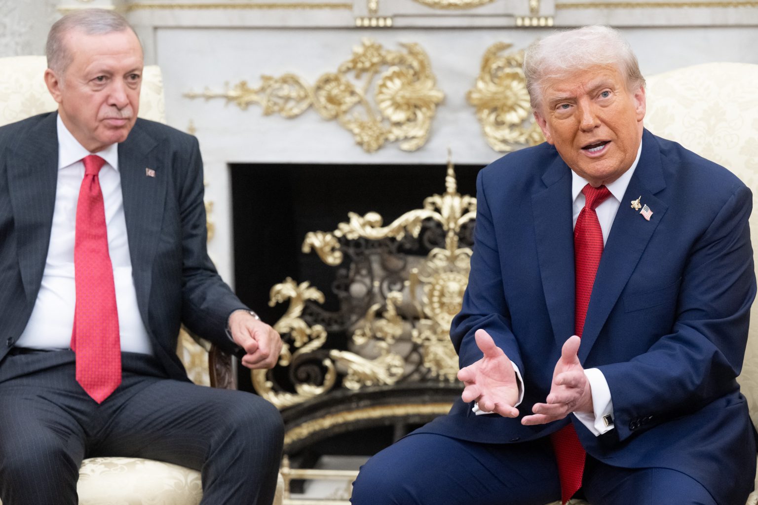 Ο Ερντογάν έφτασε στην Ουάσινγκτον με μια «βαριά» λίστα αγορών και αιτημάτων. Ο Τραμπ, γνωστός για την προθυμία του να συζητά «business» και να αφήνει στην άκρη «τυπικότητες» όπως οι αντιρρήσεις του Κογκρέσου, τον υποδέχθηκε θερμά. Ακόμη και η καρφίτσα στο πέτο του –ένα F-35 δίπλα στην αμερικανική σημαία– έστειλε το μήνυμα.