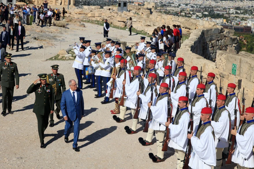 Το πρωί της Κυριακής (12/10), τελέστηκε έπαρση της ελληνικής σημαίας στον Ιερό Βράχο της Ακρόπολης, παρουσία του Προέδρου της Δημοκρατίας Κώστα Τασούλα, του υφυπουργού Εσωτερικών Βασίλη Σπανάκη και του δημάρχου Αθηναίων Χάρη Δούκα.