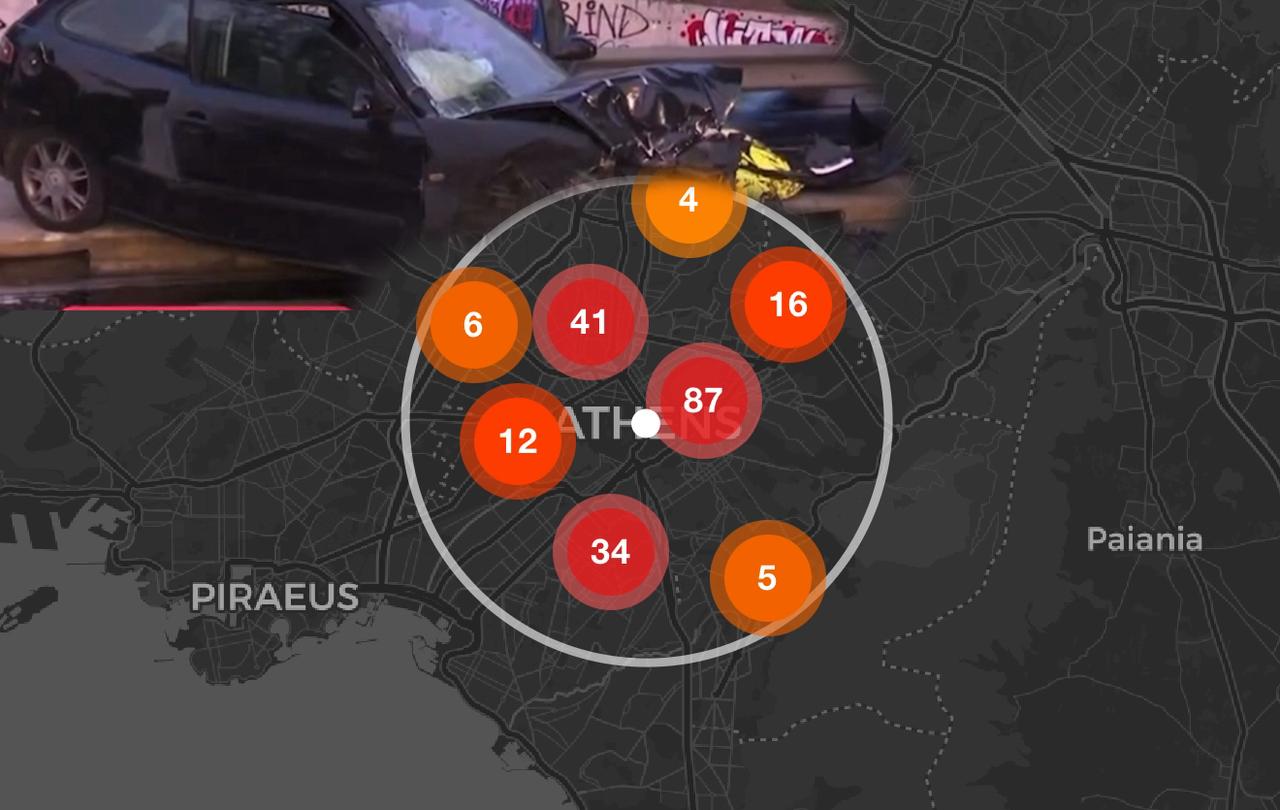 2.168 ατυχήματα σε έξι μήνες Η Λ. Αλεξάνδρας, η Πέτρου Ράλλη, η Γρηγορίου Λαμπράκη και η Σταδίου στις πρώτες θέσεις του μαύρου πίνακα