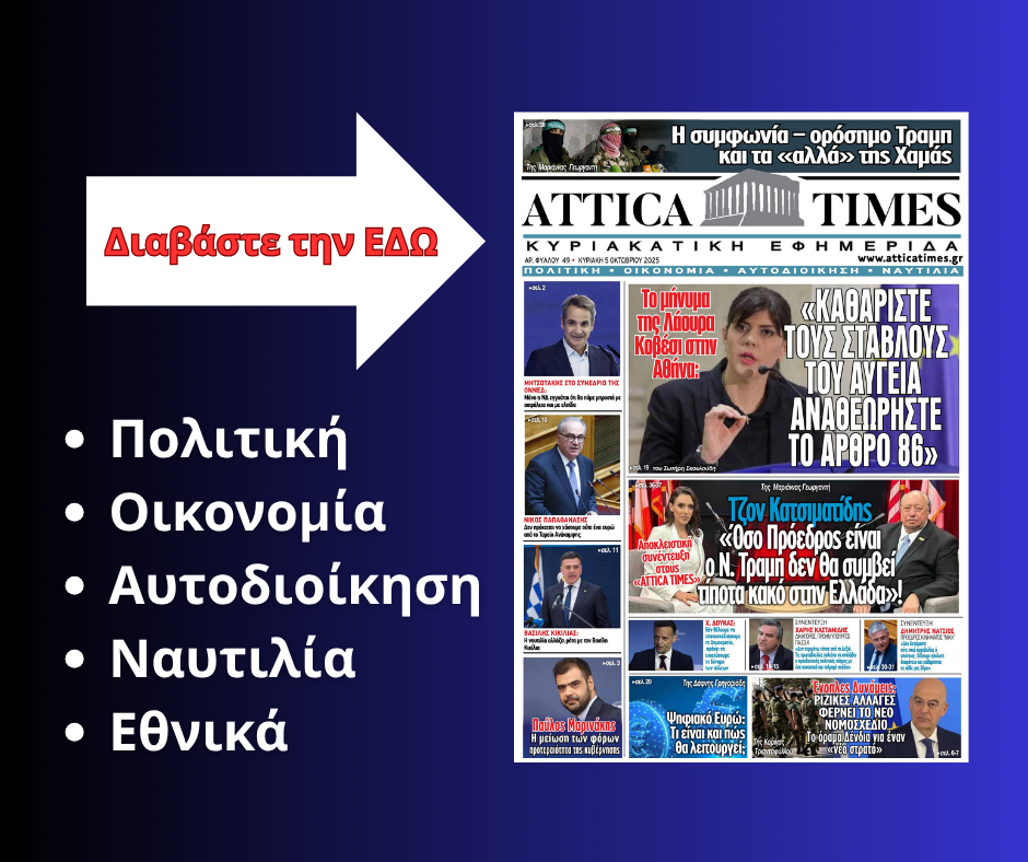 Διαβάστε ΤΩΡΑ την εφημερίδα Attica Times της Κυριακής