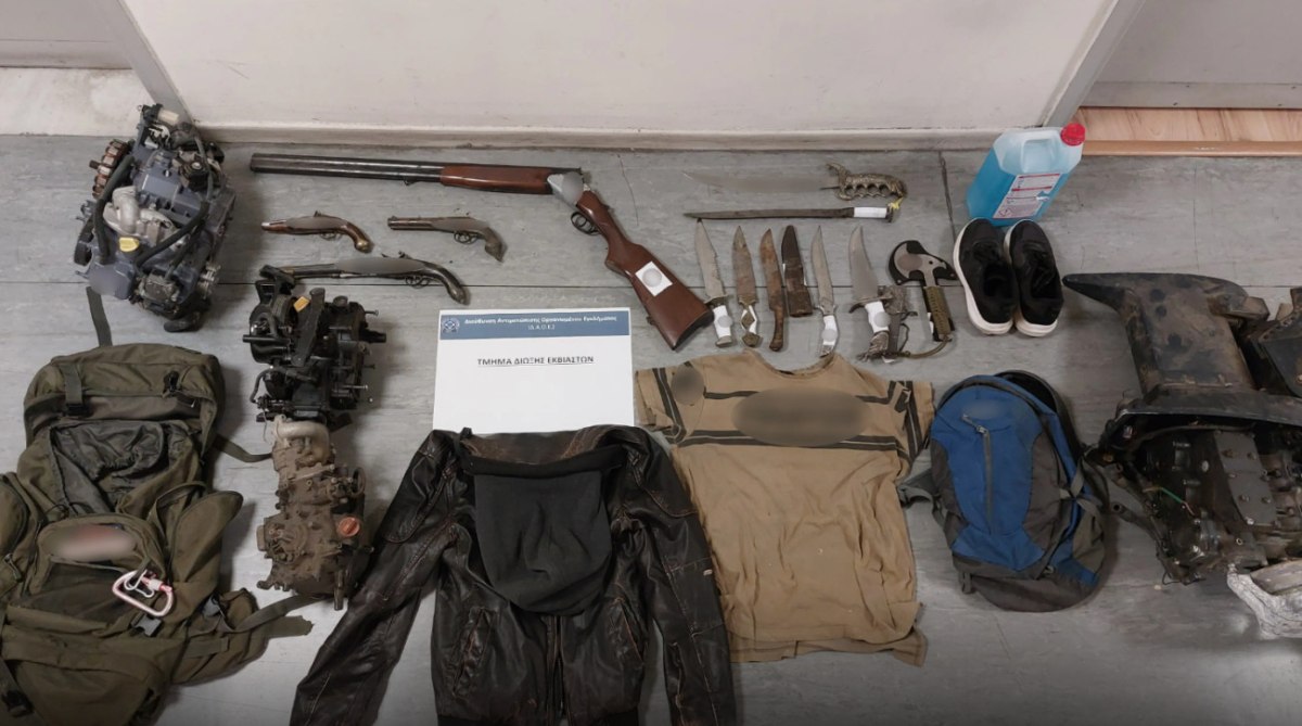 Στην κατοχή του βρέθηκαν όπλα, μαχαίρια, σκάφη και εξωλέμβιες μηχανές – Είχε προκαλέσει πυρκαγιά πετώντας εύφλεκτο υλικό από την οροφή του καταστήματος.