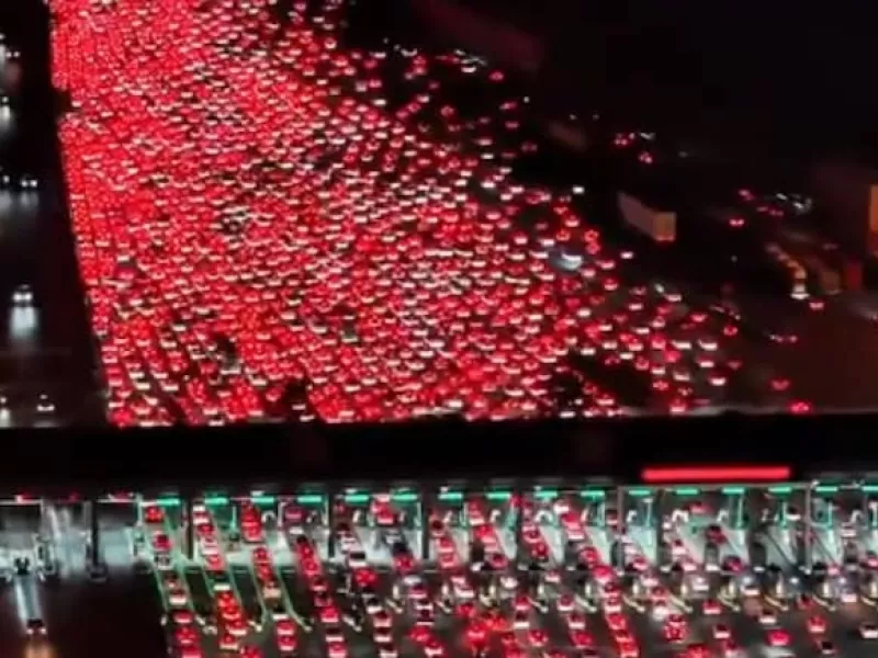 Εντυπωσιακές εικόνες από drone στον σταθμό διοδίων Wuzhuang, στην επαρχία Ανχούι της Κίνας, αποτυπώνουν ένα από τα πιο εκτεταμένα κυκλοφοριακά μπλοκαρίσματα των τελευταίων ετών. Εκατοντάδες χιλιάδες οδηγοί έμειναν εγκλωβισμένοι για ώρες, σε έναν αυτοκινητόδρομο που διαθέτει 36 λωρίδες εισόδου, οι οποίες στη συνέχεια συρρικνώνονται σε μόλις τέσσερις.