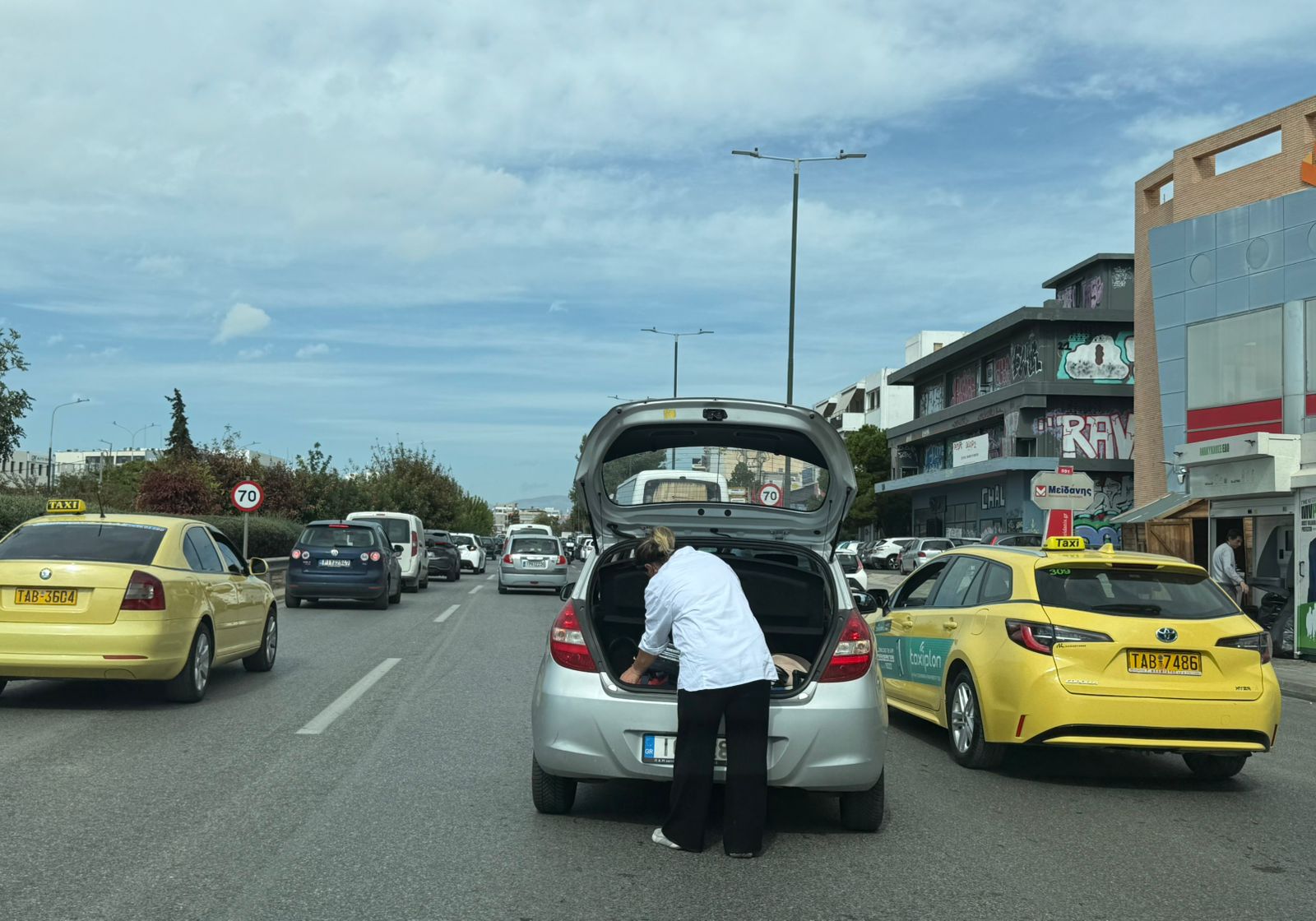 Η κυκλοφορία διεξάγεται με εξαιρετικά χαμηλές ταχύτητες, ενώ σχηματίζονται ουρές εκατοντάδων μέτρων από το ύψος της Γλυφάδας έως και τη διασταύρωση με την Αλίμου. Οι οδηγοί βρίσκονται σχεδόν ακινητοποιημένοι, ενώ απαιτείται υπομονή και προσοχή κατά την προσέγγιση του σημείου.