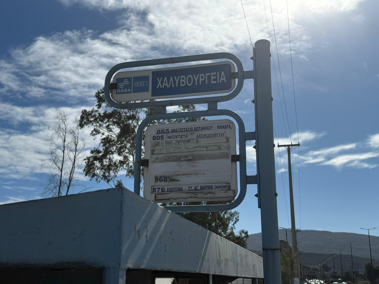 Μια στάση αστικών συγκοινωνιών που περισσότερο θυμίζει εγκαταλελειμμένο υπόστεγο παρά σημείο εξυπηρέτησης πολιτών συναντά κανείς στη Χαλυβουργία, στο ρεύμα προς Ελευσίνα. Εκεί, καθημερινά, δεκάδες εργαζόμενοι περιμένουν τα λεωφορεία των γραμμών 805, 865, 868 και 876, για να μεταβούν στις δουλειές τους – μέσα σε συνθήκες που αποτελούν προσβολή για κάθε επιβάτη.