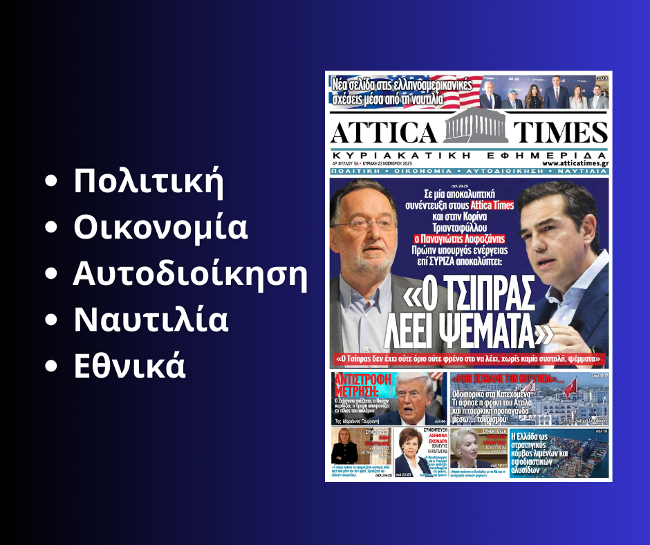 Διαβάστε ΤΩΡΑ την εφημερίδα Attica Times της Κυριακής