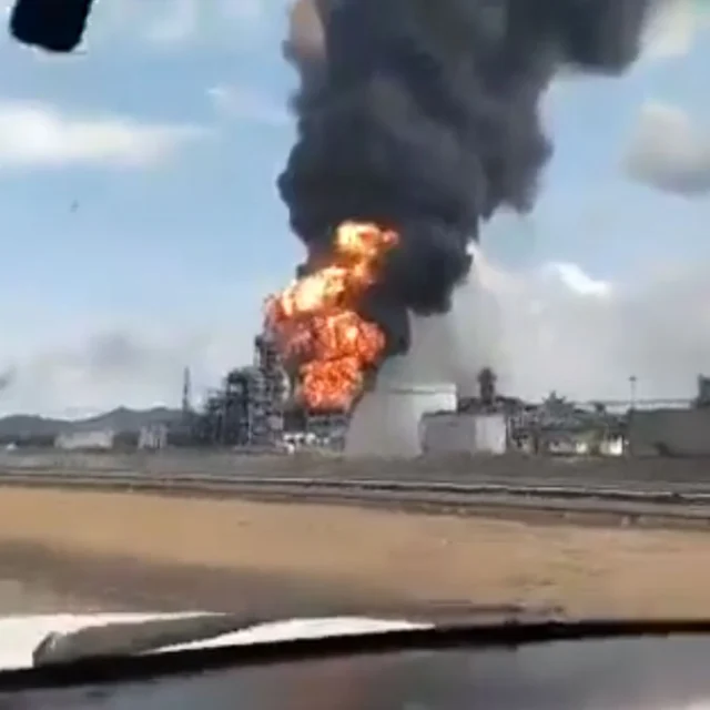 Η έκρηξη προκάλεσε μεγάλη πυρκαγιά, ενώ πυκνά σύννεφα μαύρου καπνού γέμισαν τον ουρανό της περιοχής. Οι εργαζόμενοι απομακρύνθηκαν άμεσα από το σημείο και στο εργοστάσιο έσπευσαν ασθενοφόρα και ομάδες διάσωσης.