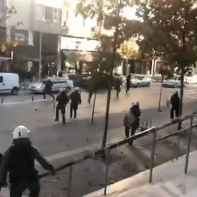 Η ένταση ξεκίνησε γύρω στις 8:30, όταν άτομα με κράνη επιτέθηκαν με καρέκλες και άλλα αντικείμενα σε υποστηρικτές αντίπαλης ομάδας που βρίσκονταν στα σκαλιά των δικαστηρίων. Άμεση ήταν η επέμβαση των δυνάμεων των ΜΑΤ, που έκαναν περιορισμένη χρήση δακρυγόνων για να χωρίσουν τους εμπλεκόμενους.