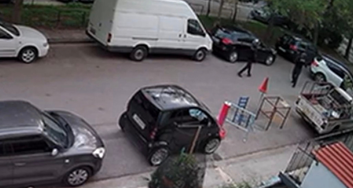 Στο υλικό φαίνεται αρχικά το λευκό αυτοκίνητο που οδηγούσε ο 58χρονος να κινείται στην περιοχή, μέχρι τη στιγμή που χάνει τον έλεγχο και συγκρούεται με σταθμευμένο μαύρο όχημα.