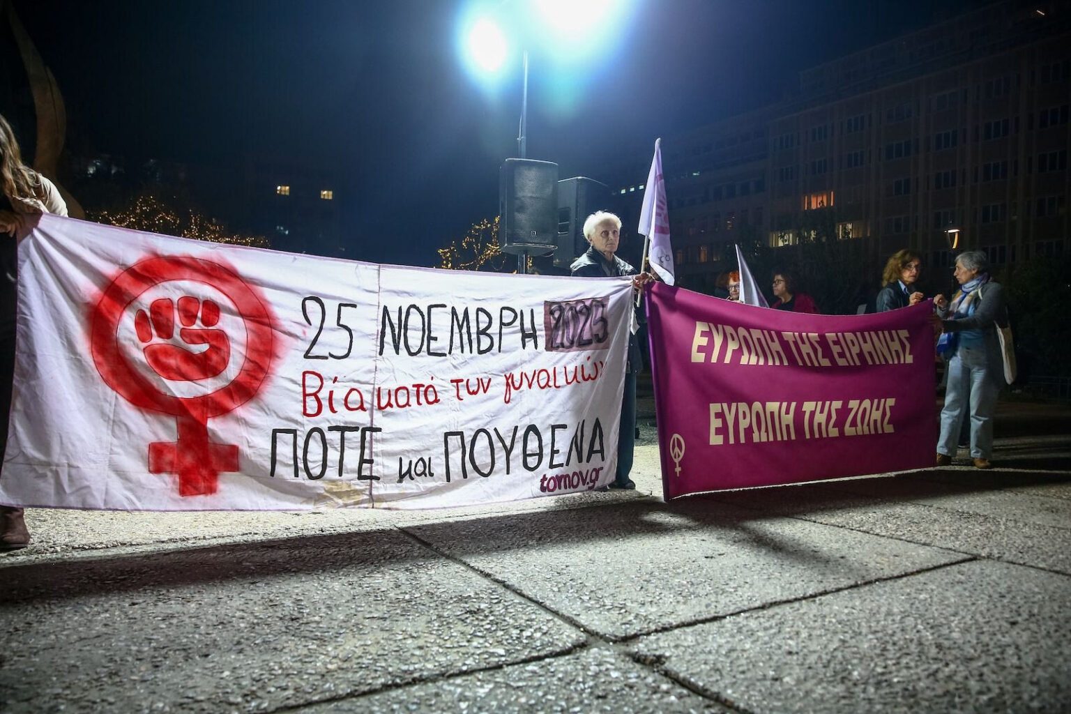 Με δυναμικά συνθήματα και μεγάλη συμμετοχή πραγματοποιήθηκε το απόγευμα της Τρίτης, 25 Νοεμβρίου, η πορεία για την Παγκόσμια Ημέρα Εξάλειψης της βίας κατά των γυναικών στο κέντρο της Αθήνας. Η συγκέντρωση ξεκίνησε λίγο μετά τις 17:00 από την πλατεία Κλαυθμώνος, με τις διαδηλώτριες να κατευθύνονται ειρηνικά προς το Σύνταγμα, υπό διακριτική παρακολούθηση ισχυρών αστυνομικών δυνάμεων.