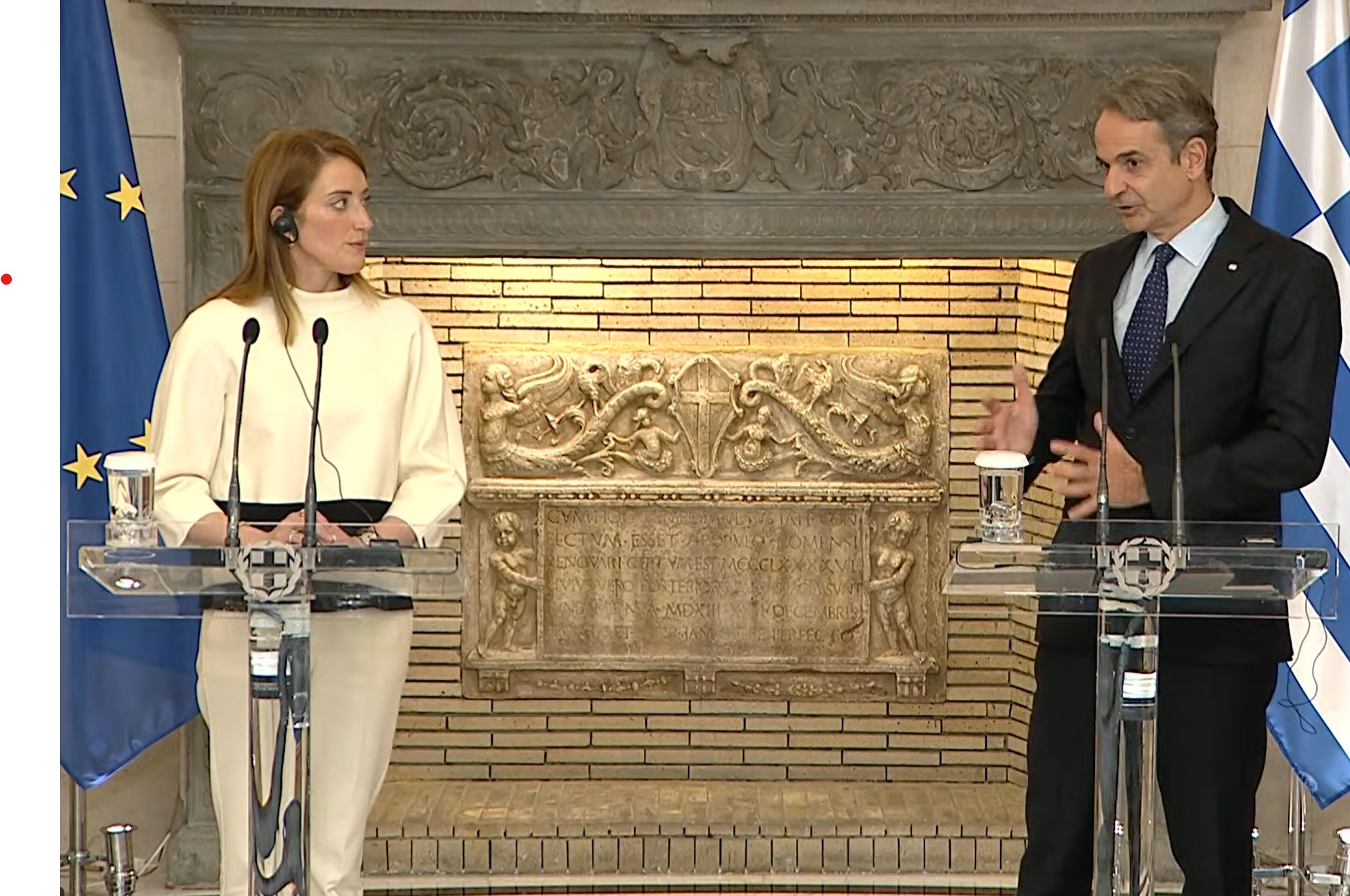 Ο πρωθυπουργός Κυριάκος Μητσοτάκης πραγματοποίησε συνάντηση στο Μέγαρο Μαξίμου με την πρόεδρο του Ευρωπαϊκού Κοινοβουλίου Ρομπέρτα Μετσόλα.