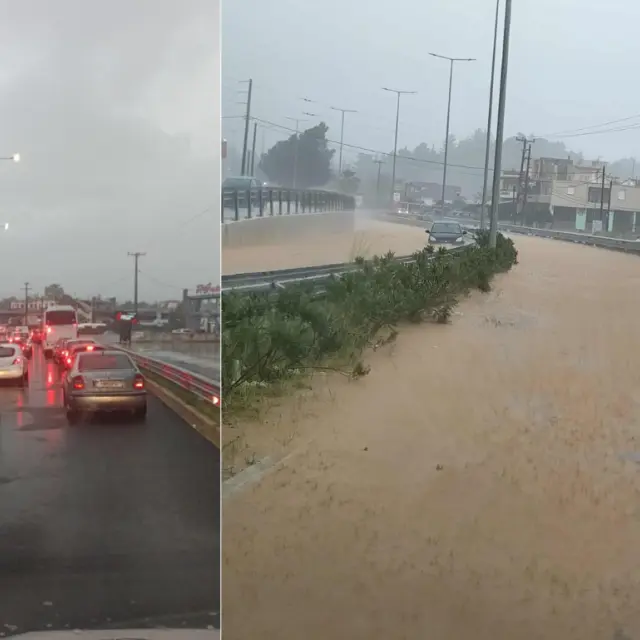 Σημαντικές δυσκολίες καταγράφονται και στην Κέρκυρα, όπου η παρατεταμένη δυνατή βροχή είχε ως αποτέλεσμα να πλημμυρίσει ο δρόμος προς τον Άγιο Προκόπιο. Το νερό έχει καλύψει μεγάλο τμήμα του οδοστρώματος, καθιστώντας τη διέλευση με όχημα εξαιρετικά επικίνδυνη ή και αδύνατη.
