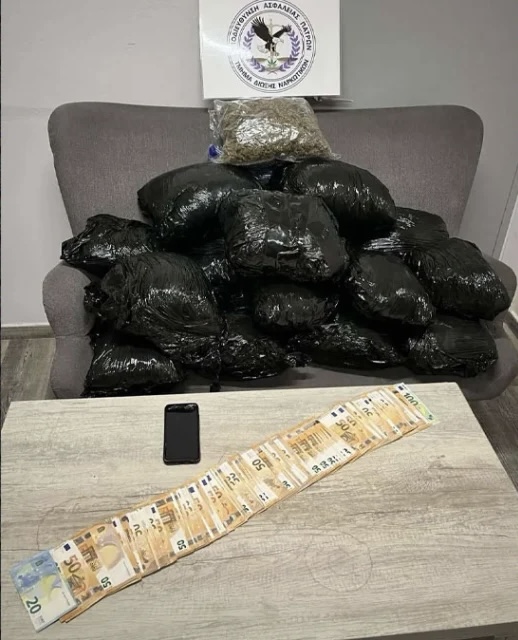 Στην Πάτρα, η αστυνομία συνέλαβε έναν άνδρα για διακίνηση ναρκωτικών μετά από έρευνα στο σπίτι και την αποθήκη του. Κατασχέθηκαν συνολικά 12 κιλά και 846 γραμμάρια κάνναβης, διαμοιρασμένα σε 20 συσκευασίες, 8.190 ευρώ και ένα κινητό τηλέφωνο.