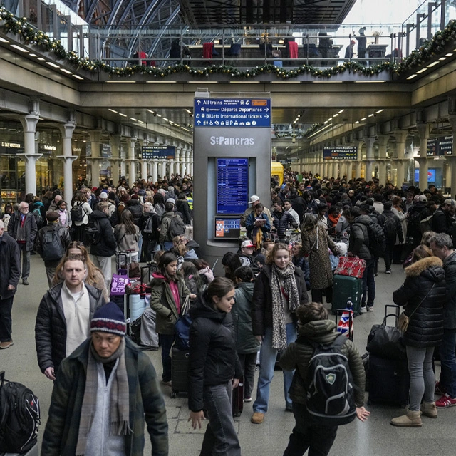 Η εικόνα στον σιδηροδρομικό σταθμό St Pancras στο Λονδίνο είναι αποκαλυπτική, με εκατοντάδες ταξιδιώτες να βρίσκονται σε αναμονή και τον συνωστισμό να αυξάνεται ώρα με την ώρα.