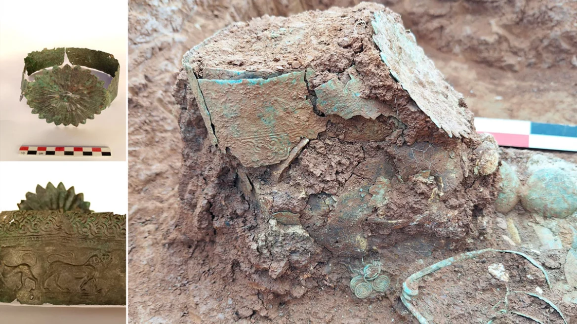 Ξεχωριστή θέση ανάμεσα στα ευρήματα κατέχει η ταφή μιας νεαρής γυναίκας, περίπου 20–30 ετών, που χρονολογείται στο β’ μισό του 7ου αιώνα π.Χ. Η νεκρή έφερε χάλκινο ταινιωτό διάδημα, διακοσμημένο με ρόδακα σε μορφή ήλιου και ζεύγη εραλδικών λεόντων. Το διάδημα είχε τοποθετηθεί ανεστραμμένο, με τους λέοντες στραμμένους προς τα κάτω – μια ιδιαίτερη επιλογή με συμβολισμούς που στη σύγχρονη εποχή συνδέονται με μεταβολές εξουσίας, ενώ ιστορικά αντιστοιχούν σε μια περίοδο μετάβασης από τη βασιλεία στην κυριαρχία της αριστοκρατίας.