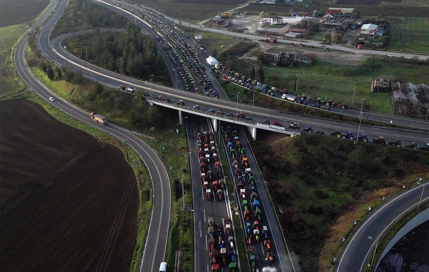 Το σημείο αυτό έχει εξελιχθεί στο «κάστρο» του Θεσσαλικού Κάμπου, καθώς οι εικόνες από ψηλά δείχνουν τη συνεχή ενίσχυση του μπλόκου, που αποτελεί πλέον τον κεντρικό πυρήνα της κινητοποίησης των παραγωγών. Εκατοντάδες τρακτέρ έχουν τοποθετηθεί σε οργανωμένους σχηματισμούς, αποκλείοντας τον βασικό οδικό άξονα και μεταφέροντας ένα σαφές μήνυμα προς την κυβέρνηση.