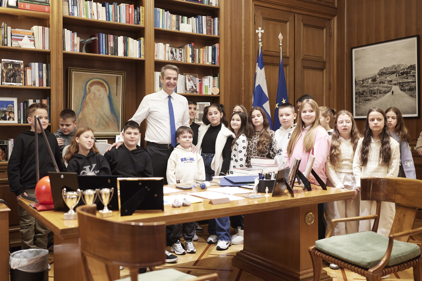 Ο Πρωθυπουργός Κυριάκος Μητσοτάκης υποδέχθηκε στο Μέγαρο Μαξίμου τις μαθήτριες και τους μαθητές των Ε’ και ΣΤ’ τάξεων του μειονοτικού Δημοτικού Σχολείου Πάχνης Ξάνθης, συνοδευόμενους από τους δασκάλους και τους γονείς τους.