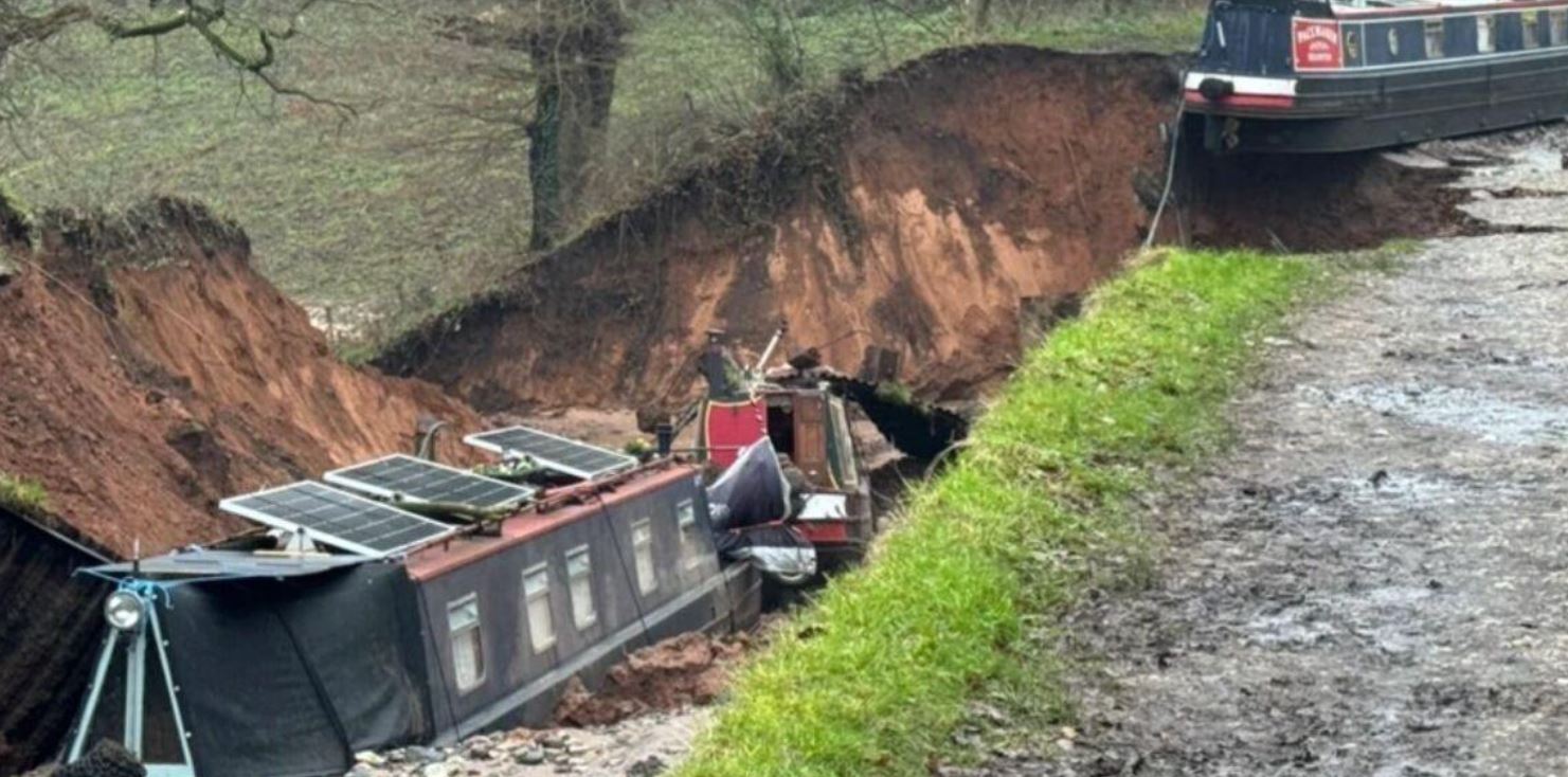 Συναγερμός σήμανε στο Σρόπσαϊρ της Αγγλίας μετά από μεγάλη καθίζηση σε κανάλι της περιοχής, που είχε ως αποτέλεσμα να εγκλωβιστούν πλοιάρια. Σύμφωνα με αναφορές του BBC, το νερό στο σημείο φαίνεται να έχει αποστραγγιστεί, καθιστώντας αδύνατη τη διέλευση των σκαφών.