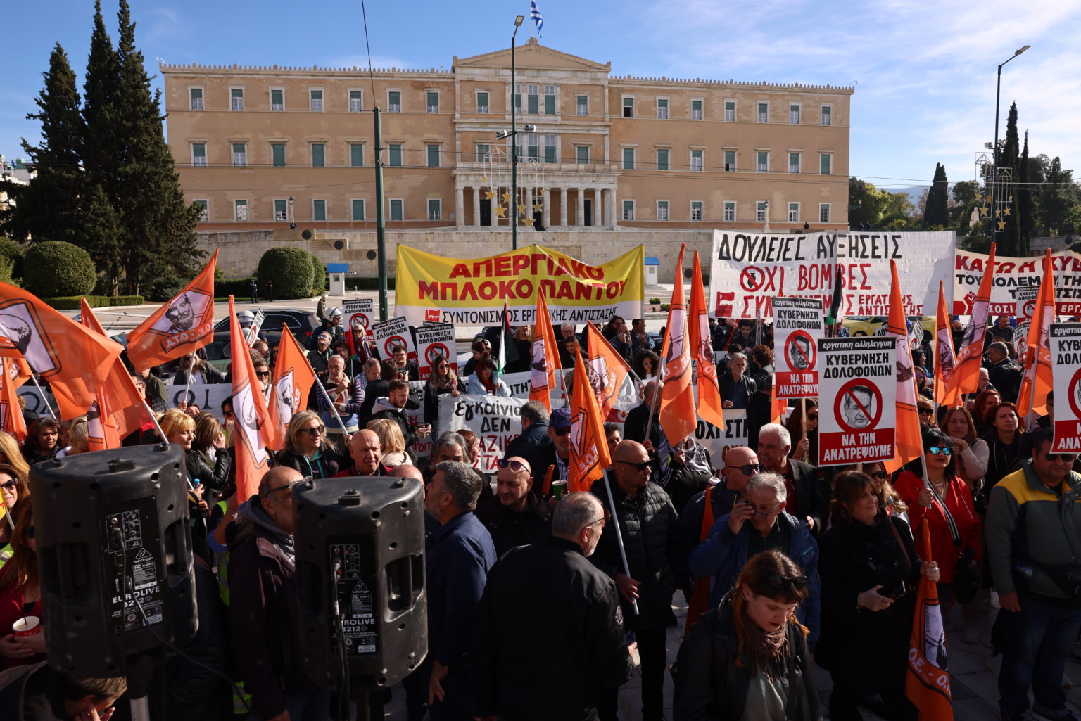 Η ΑΔΕΔΥ, από την πλευρά της, τονίζει ότι η κινητοποίηση στρέφεται «ενάντια στον προϋπολογισμό του πολέμου και της αφαίμαξης της εργαζόμενης πλειοψηφίας», καλώντας σε μαζική συμμετοχή στις απεργιακές διαδηλώσεις Ομοσπονδιών, Εργατικών Κέντρων και συνδικάτων σε όλη τη χώρα.