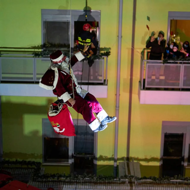 Όπως καταγράφεται σε βίντεο του Associated Press, οι πυροσβέστες φόρεσαν στολές του Άι Βασίλη και, αξιοποιώντας τον εξοπλισμό τους, κατέβηκαν με σχοινιά από την οροφή του νοσοκομείου, προσεγγίζοντας τα παράθυρα των θαλάμων για να παραδώσουν δώρα στους μικρούς ασθενείς.