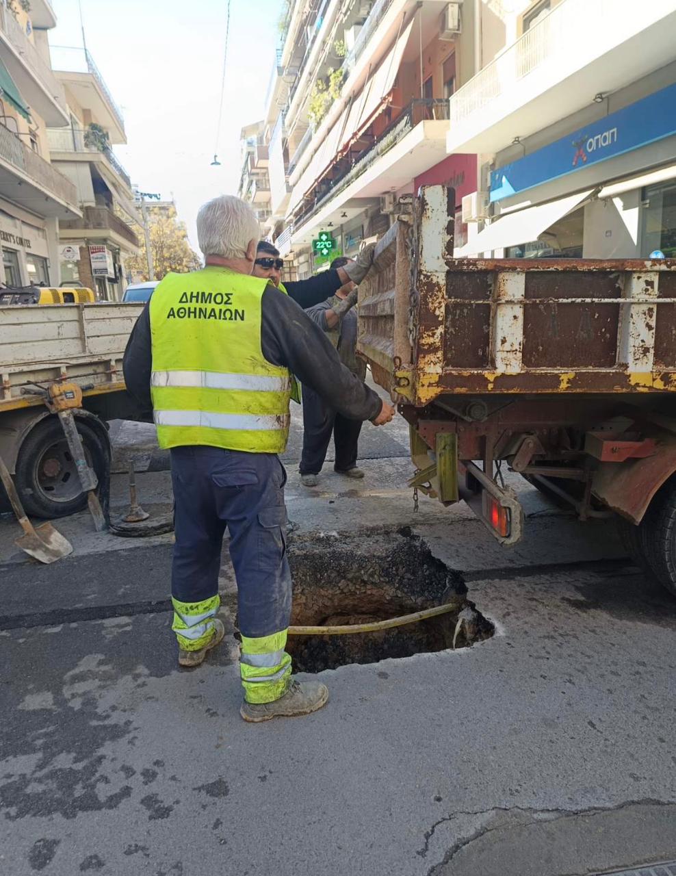 Με εντολή του δημάρχου Αθηναίων Χάρη Δούκα, συνεργεία των τεχνικών υπηρεσιών του Δήμου έσπευσαν άμεσα στο σημείο της καθίζησης και προχώρησαν χωρίς καθυστέρηση στην αποκατάσταση της βλάβης του οδοστρώματος, απομακρύνοντας τον κίνδυνο για οχήματα και πεζούς.