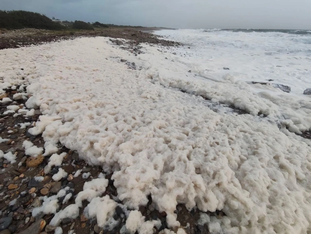Οι θυελλώδεις άνεμοι προκάλεσαν μανιασμένα κύματα, τα οποία ανατάραξαν τα νερά και μετέφεραν οργανική ύλη, όπως φυτοπλάγκτον, φύκια και αποσυντιθέμενα υλικά, προς την ακτή. Το αποτέλεσμα ήταν η δημιουργία λευκού αφρού που σκέπασε την παραλία, προκαλώντας εντύπωση σε κατοίκους και επισκέπτες.