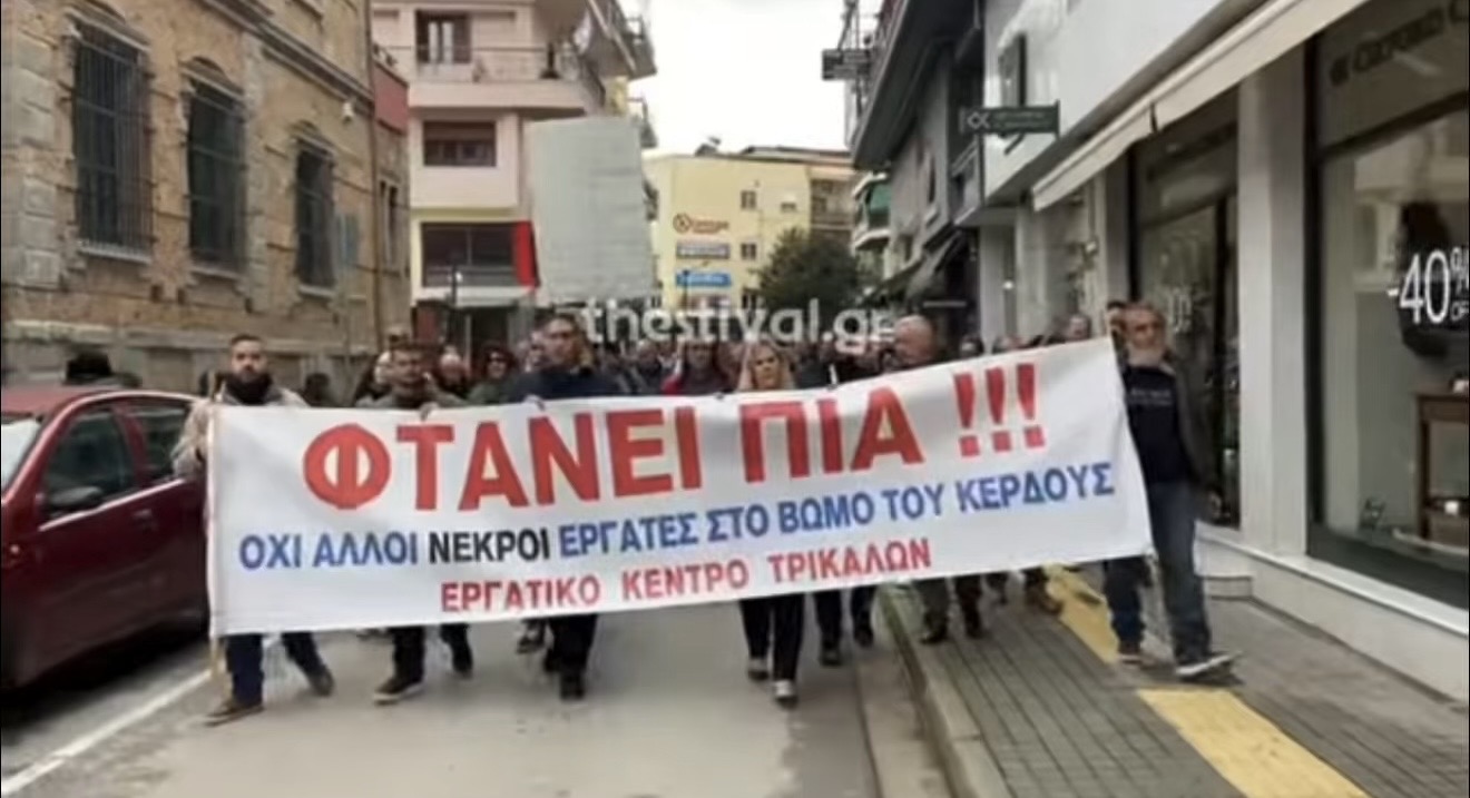 Στα Τρίκαλα πραγματοποιήθηκε σήμερα συγκέντρωση διαμαρτυρίας για την τραγωδία στο εργοστάσιο Βιολάντα, όπου πέντε εργαζόμενες έχασαν τη ζωή τους. Το Εργατικό Κέντρο Τρικάλων κάλεσε τους πολίτες να συμμετάσχουν σε 24ωρη απεργία, εκφράζοντας την αντίθεσή τους στις επικίνδυνες συνθήκες εργασίας.