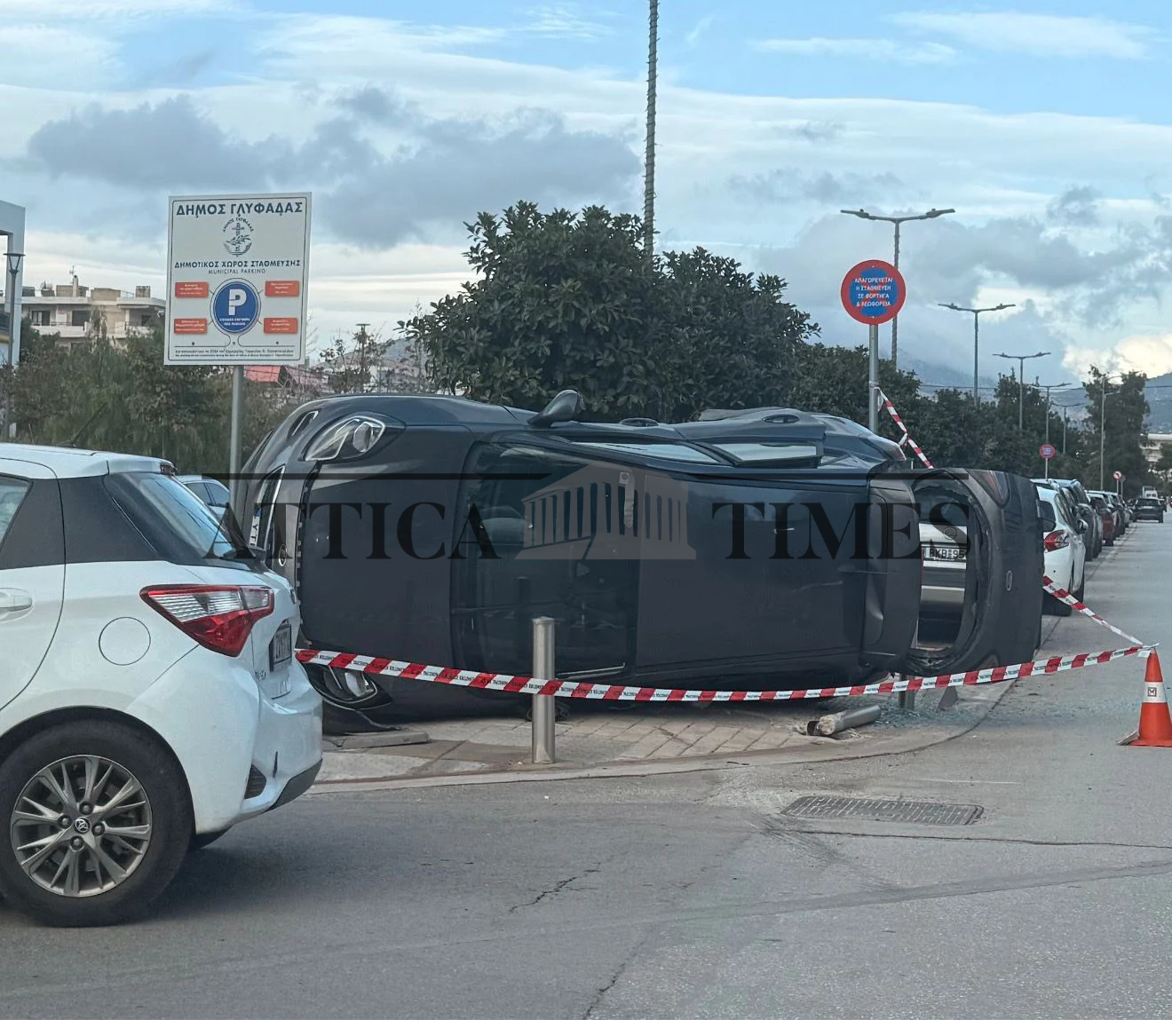 Αποκλειστικό: Αυτοκίνητο τούμπαρε λίγα μέτρα από το Δημαρχείο Γλυφάδας
