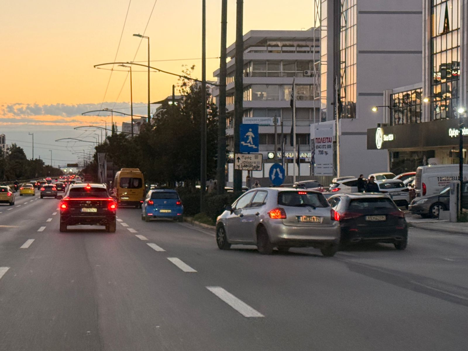 Στο καθοδικό ρεύμα, στο ύψος της Χαμοστέρνας και μπροστά από το Πάντειο Πανεπιστήμιο, στη Χαροκόπου, στη Δαβάκη και στην περιοχή του Ωνασείου Νοσοκομείου, τα παρκαρισμένα οχήματα αποτελούν καθημερινό φαινόμενο. Δεν περιορίζονται σε βοηθητικούς χώρους, αλλά καταλαμβάνουν λωρίδες κυκλοφορίας και το πιο επικίνδυνο τις λωρίδες επιτάχυνσης και επιβράδυνσης.