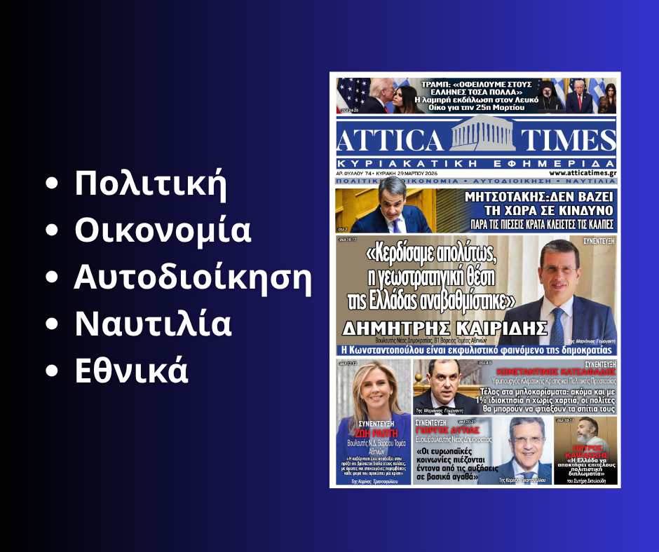 Διαβάστε ΤΩΡΑ την εφημερίδα Attica Times της Κυριακής