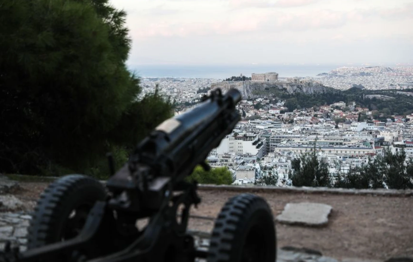 Η 25η Μαρτίου ξεκίνησε στην Αθήνα με τον καθιερωμένο συμβολικό τρόπο, καθώς η πόλη «ξύπνησε» από τους 21 κανονιοβολισμούς που πραγματοποιήθηκαν από το πυροβολείο στον Λυκαβηττό νωρίς το πρωί της Τετάρτης.