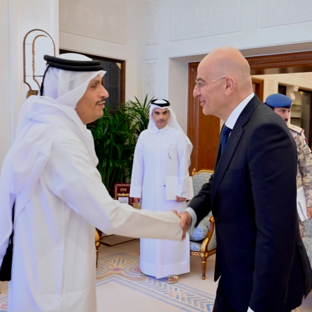 Οι εξελίξεις στη Μέση Ανατολή και οι επιπτώσεις τους στη διεθνή ασφάλεια κυριάρχησαν στη συνάντηση του Υπουργού Εθνικής Άμυνας, Νίκος Δένδιας, με τον Εμίρη του Κατάρ, Tamim bin Hamad bin Khalifa Al Thani, στο Παλάτι Lusail στη Ντόχα.